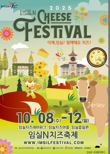 2025년 임실치즈축제는 10월 8일(수)부터 10월 12일(일)까지, 전라북도 임실군 임실치즈테마파크와 임실치즈마을, 임실읍 일원에서 열립니다.