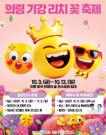 2025년 10월 3일(금) ~ 10월 12일(일): 의령 기강 리치 꽃축제 (꽃경관 단지 중심)