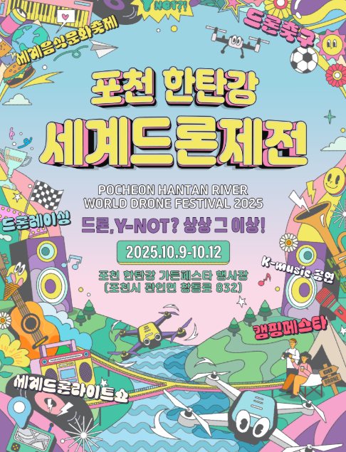 2025 포천 한탄강 세계드론제전은 10월 9일(목)부터 10월 12일(일)까지 4일간 경기도 포천시 한탄강 생태경관단지 일대에서 열린다.