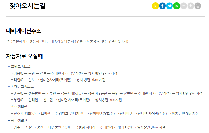 축제장에서 가까운 산내면 및 정읍 지역 맛집 몇 곳을 추천한다: