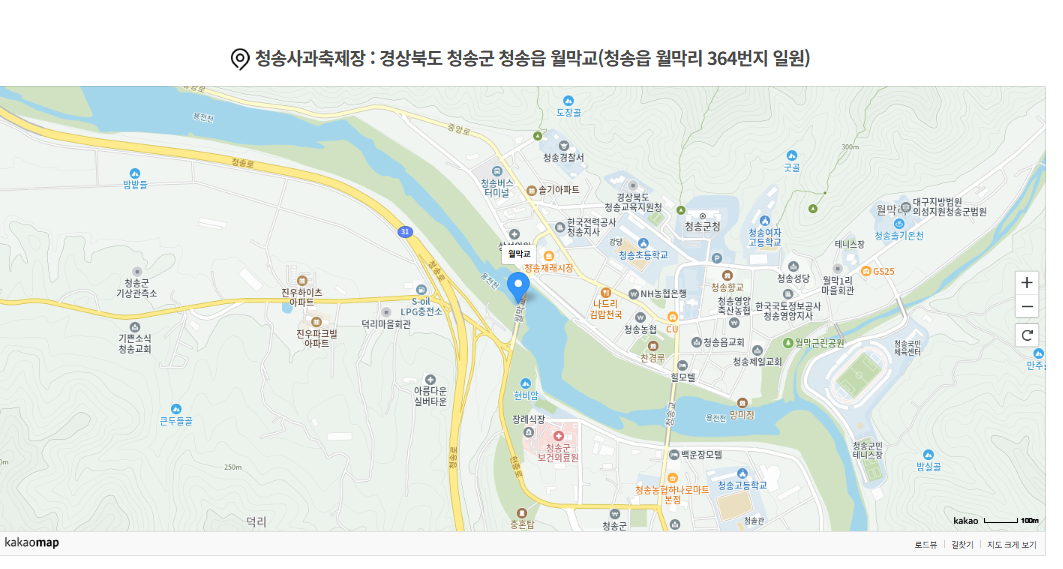2025년 청송사과축제는 10월 29일(수)부터 11월 2일(일)까지 5일간, 경북 청송군 청송읍 용전천 현비암 일원에서 열린다.