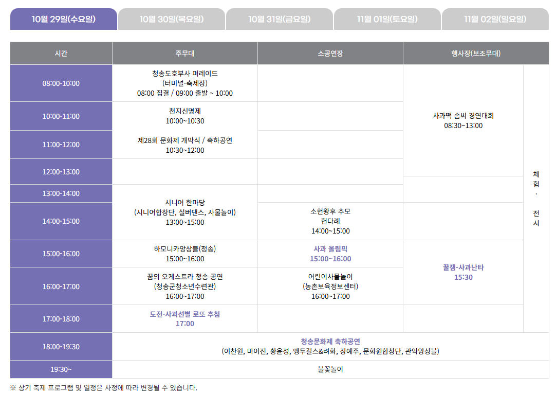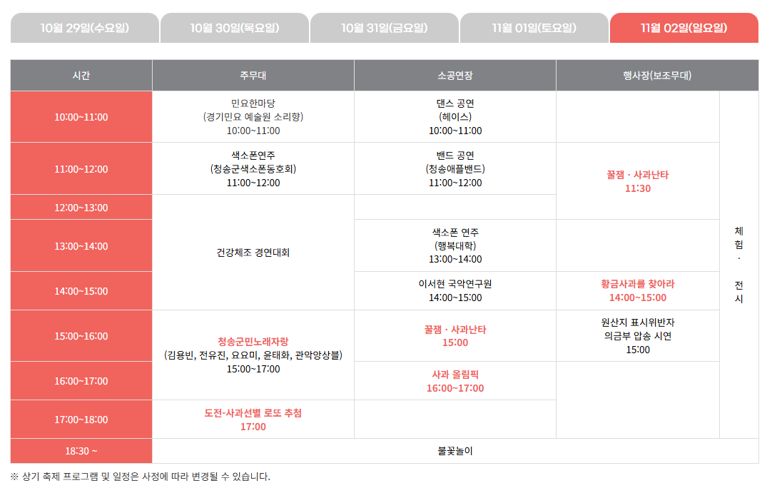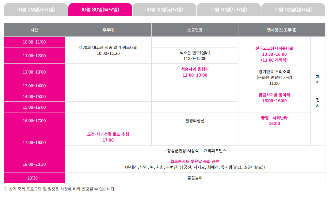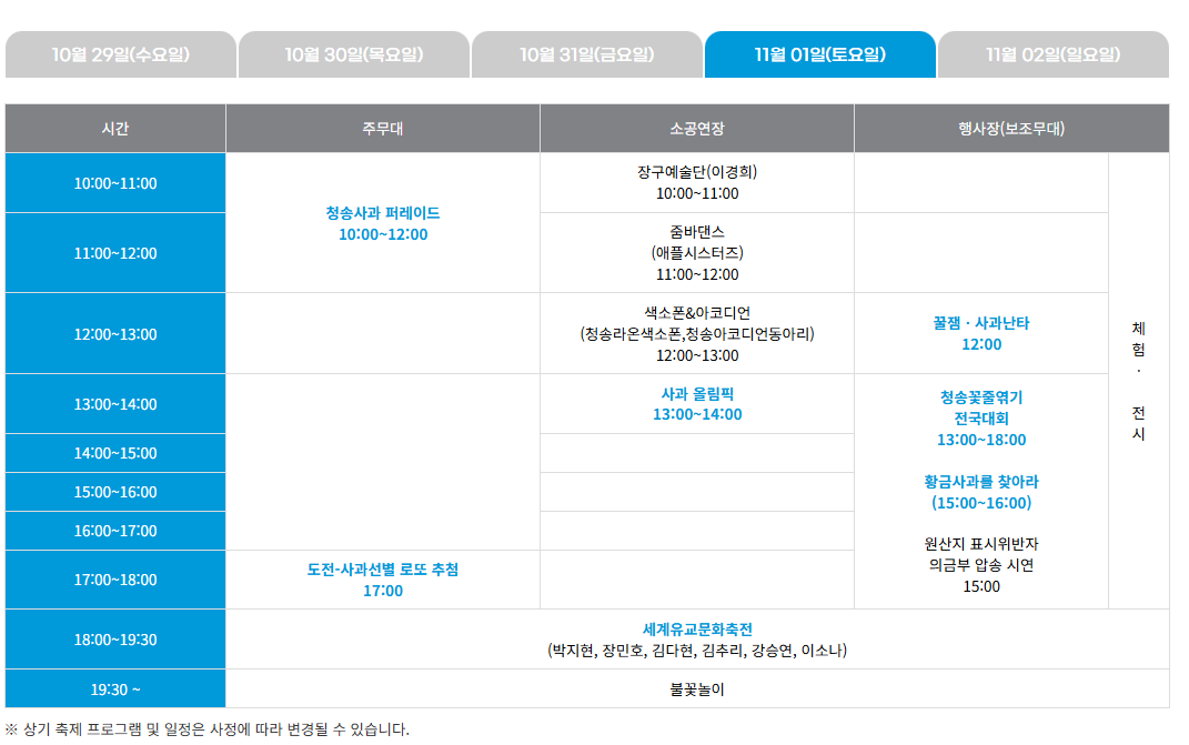 1. 청송사과축제 일정,장소