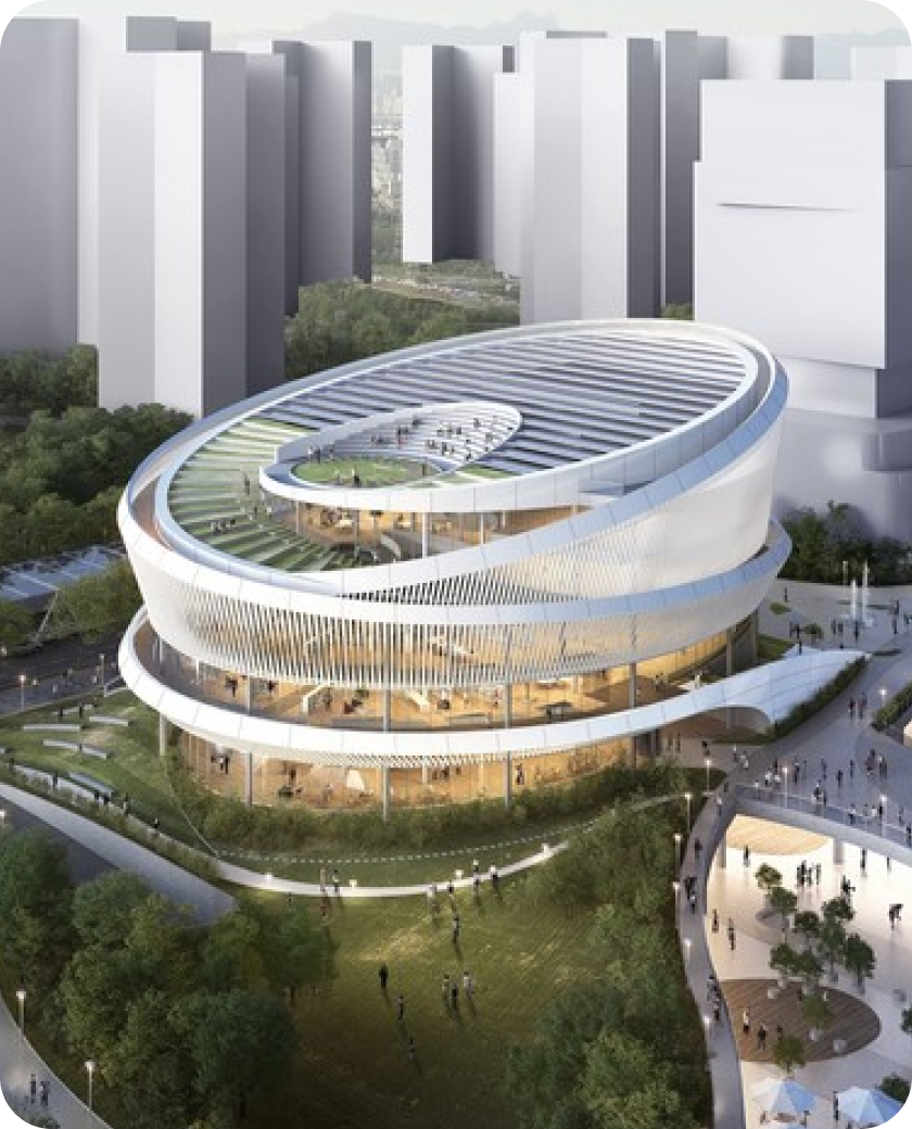 환경 지속가능성도 고려해 태양광·지열 등 친환경 설비가 적용된 건물로 설계되었다.