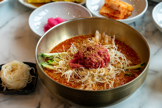 한우 물회: 일반 해산물 물회와는 다르게, 경주 한우 육회를 올려 소면과 함께 먹는 한우 물회는 경주만의 별미입니다.