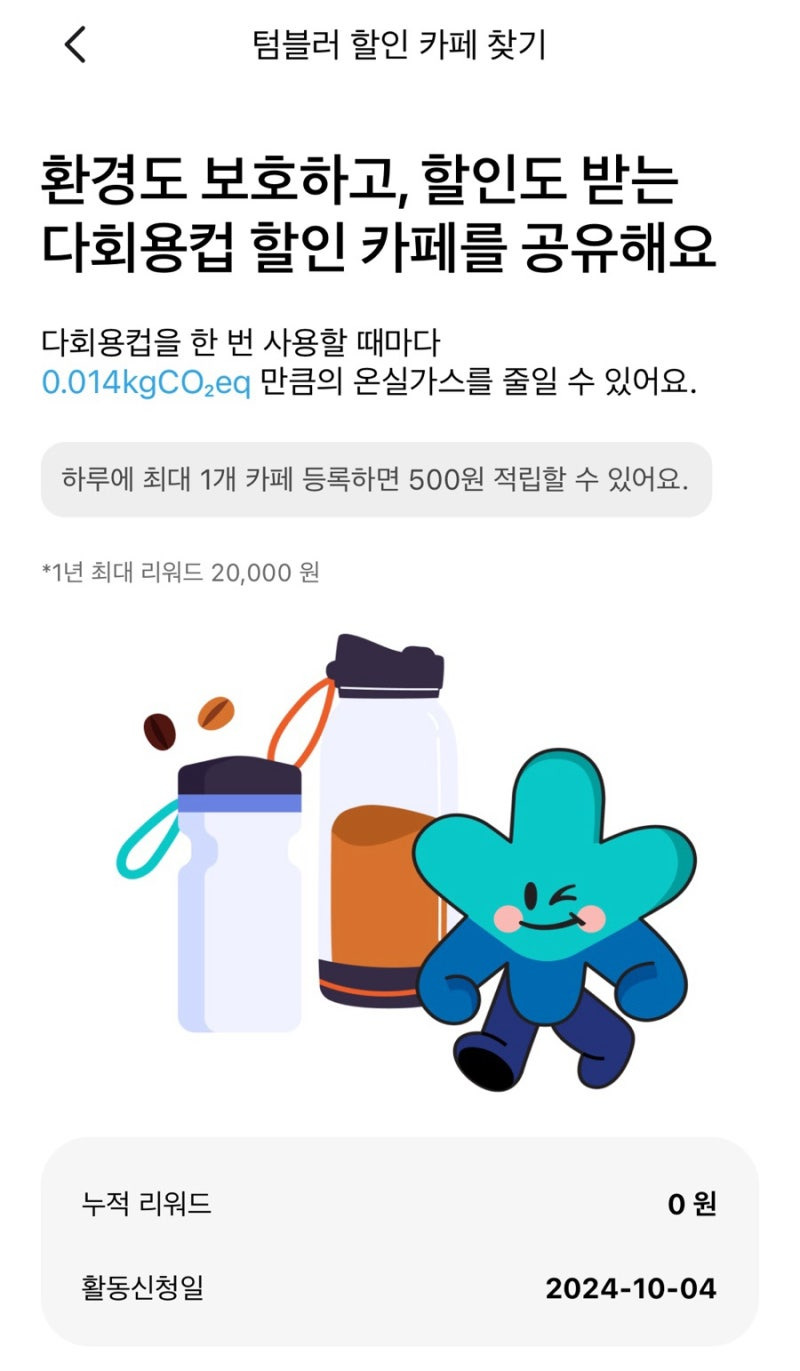 - 다회용기·텀블러 사용 : 카페, 음식점 이용 시 인증 사진 제출