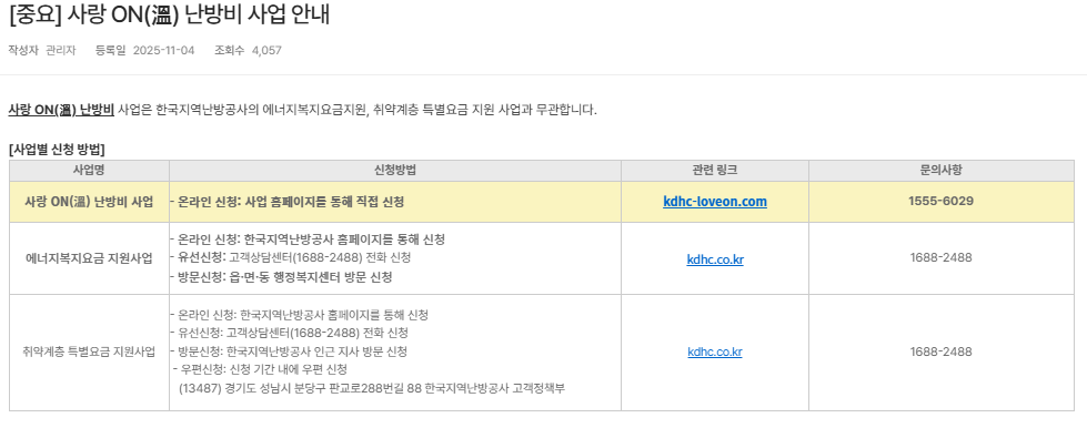 공식 사이트 : 사랑ON 난방비 홈페이지(사무국 1555-6029, 평일 10:00~17:00)