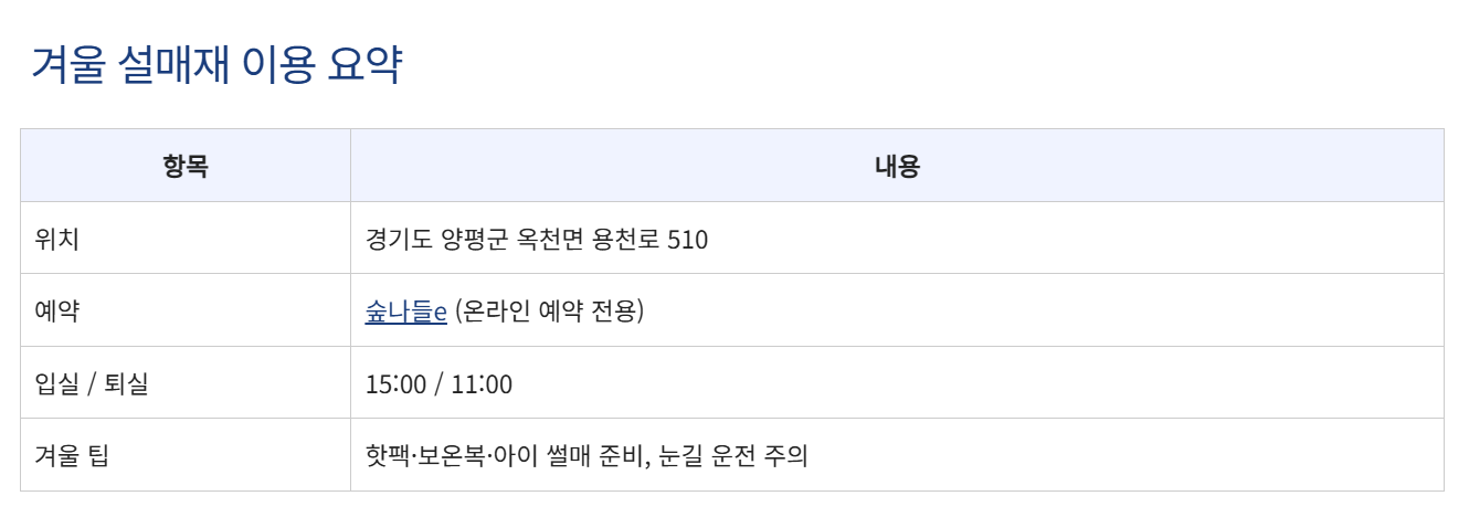 - 📅 예약: 공식 홈페이지 숲나들e에서 예약 가능
