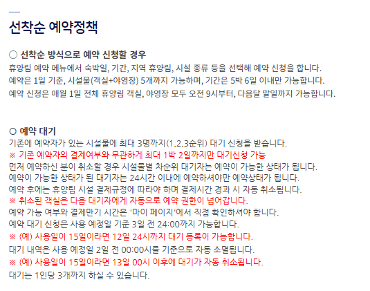 | 예약사이트 | 숲나들e(국립자연휴양림 예약) |