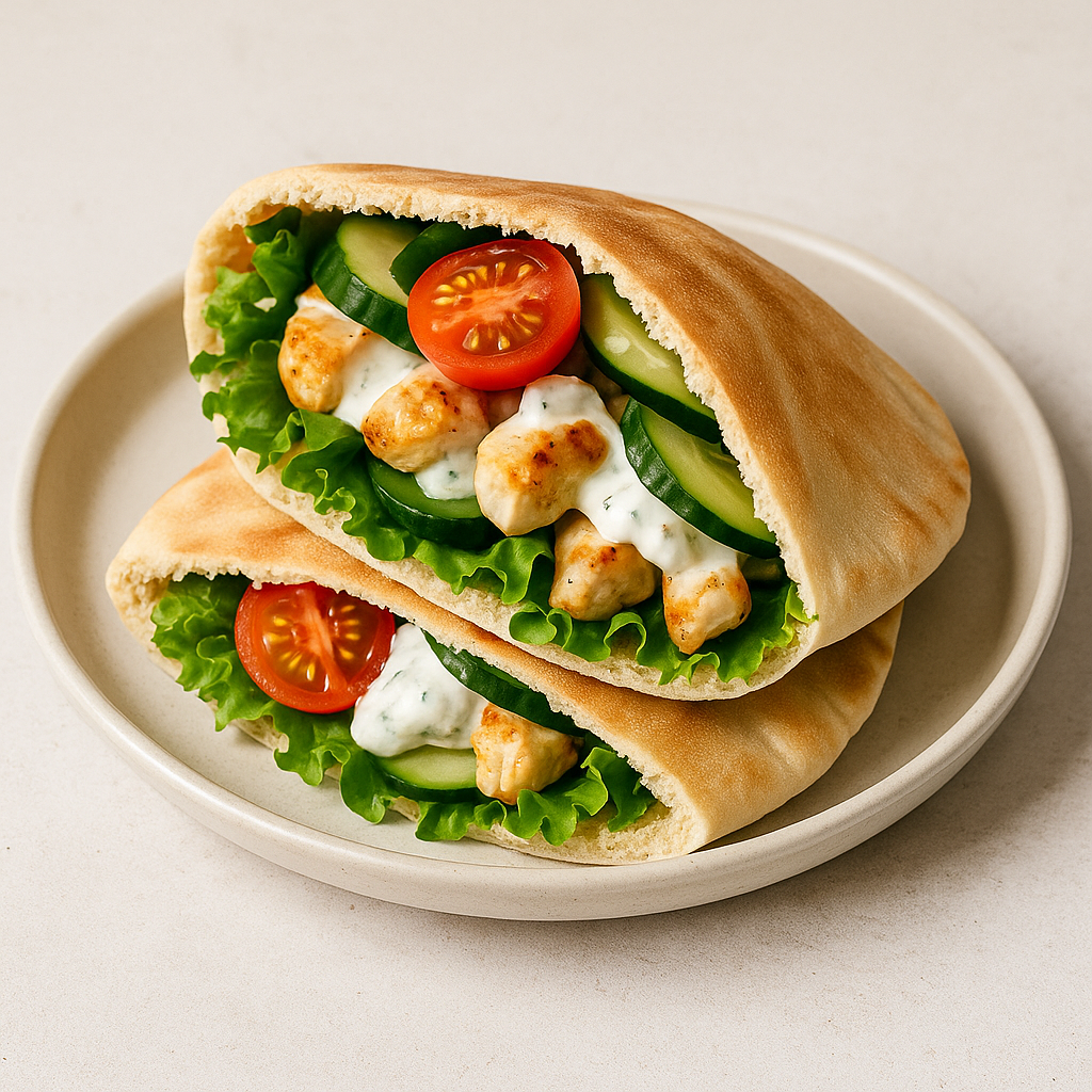 요거트 치킨 조합은 깔끔한 맛과 높은 포만감 덕분에 아침 메뉴로 인기가 많다. 닭가슴살을 큐브 형태로 자른 뒤 팬에서 노릇하게 구워주고, 플레인 요거트·레몬즙·올리브오일·소금·후추로 소스를 만들면 기본 준비가 끝난다. 포켓 안에는 양상추·오이·방울토마토를 먼저 넣어 수분을 잡아준 뒤 닭가슴살을 채워 넣고 요거트 소스를 듬뿍 넣는다. 페타치즈나 허브를 올리면 풍미가 크게 살아난다. 담백한 고단백 식단을 원하는 사람에게 추천할 만한 구성이다.요거트의 상큼함을 느낄 수 있으나 요거트 자체가 수분이 많아서 만들고 바로 먹기를 추천한다.