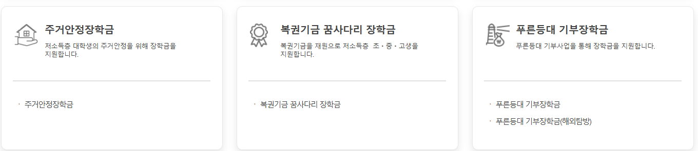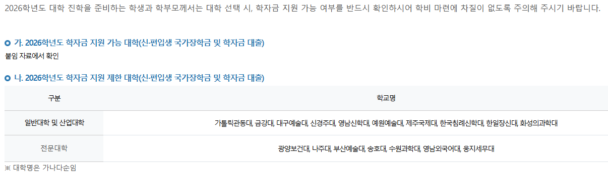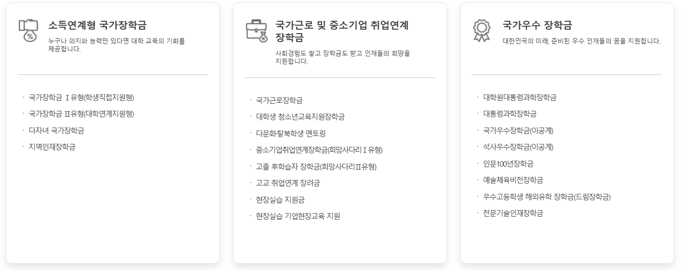 | 지원 대상 | 국내 대학 재학생 및 입학 예정자(신입·편입·재입학생 포함), 성적 및 소득 기준 충족자 |