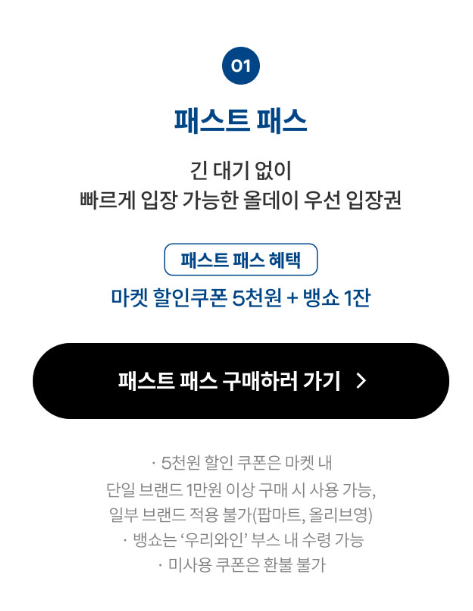 일반 입장권은 5천원부터 종류와 주차에 따라 다르고 패스트패스는 만원부터 , 프라이빗라운지 패스는 16만원부터이다.