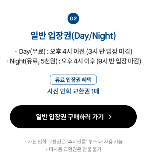또한 예매 일정은 1차·2차·3차 등 입장 기간에 맞춰 여러 번 나뉘어 열리기 때문에, 원하는 날짜가 있다면 알림 설정 후 오픈 시간에 맞춰 접속 하는 것이 좋다. 일부 회차는 현장 발권분이 소량 남아 있을 수 있지만, 현장 상황에 따라 조기 마감될 수 있어 사전 예약을 기본 전제로 생각하는 편이 안전하다.