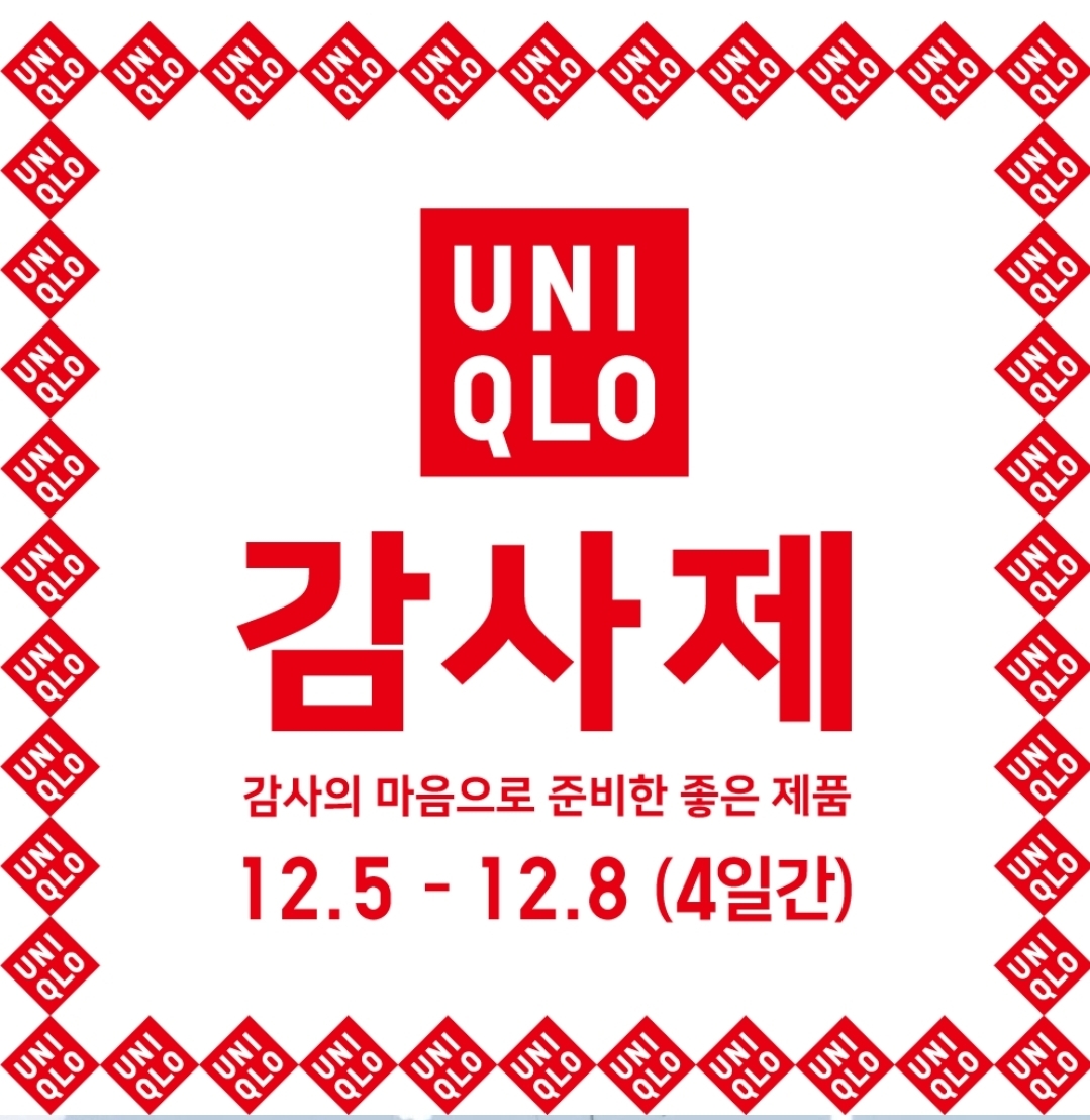 모두 기다리고 기다리던 연말 쇼핑의 핵심 이벤트인 유니클로 겨울감사제가 12월 5일(금)부터 12월 8일(월)까지 열린다.그동안 11월말에 열리나 하고 기다리셨던 분들 많으시죠? 드디어 오늘 확정되었습니다.