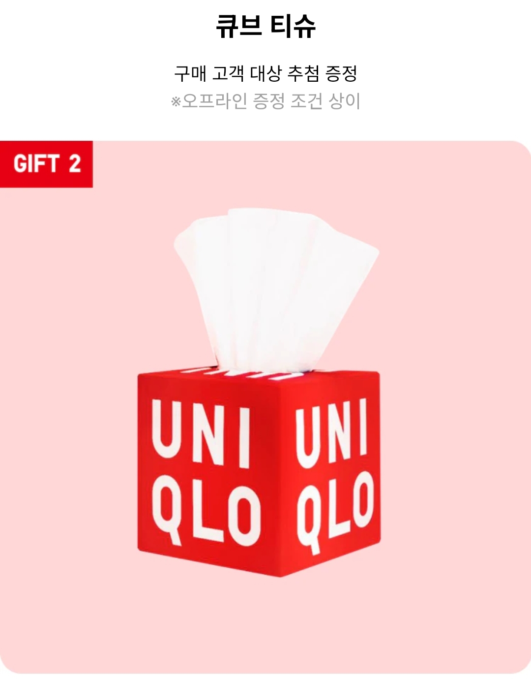 큐브 티슈-구매고객 대상 추첨 증정(모두 증정 아님 주의!)